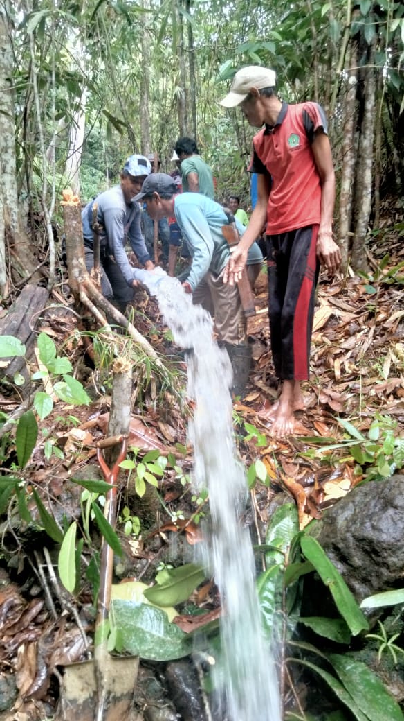 Adapun sumber mata air yang digunakan merupakan mata air gravitasi yang terletak di pegunungan desa tersebut, berjarak kurang lebih 1 kilometer dari pemukiman warga.