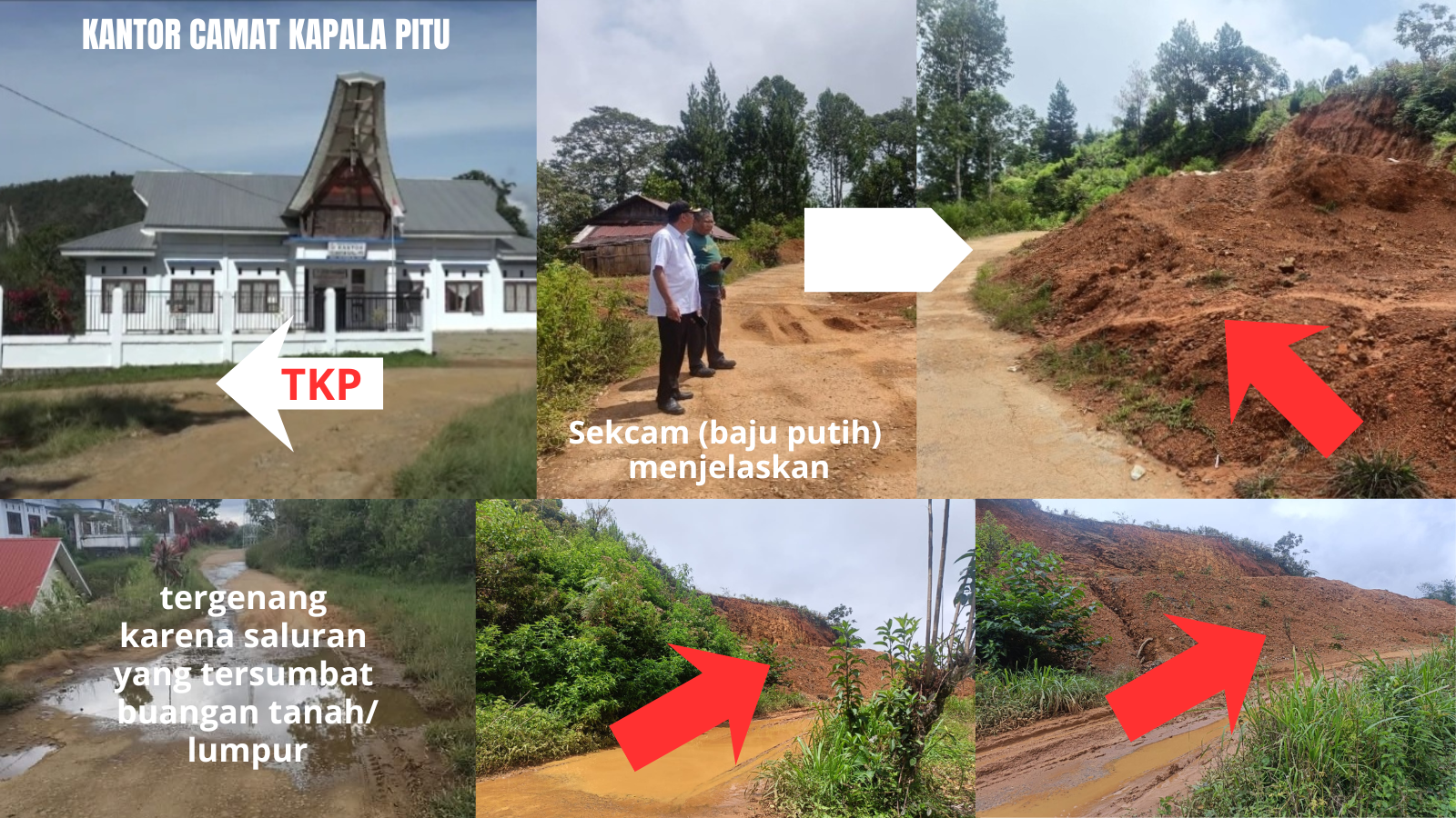 Gambar situasi di sekitar kantor Camat Kapala Pitu dengan genangan air masuk ke badan jalan lingkar Pongtorra'. Area ini menjadi wilayah kawasan wisata Kapala Pitu. (dok.ist)