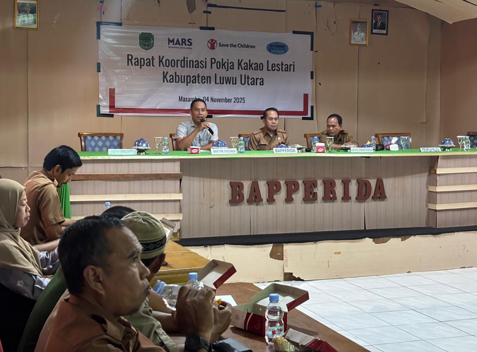 LUTRA. SINYALTAJAM. COM – Sekretariat Kelompok Kerja (Pokja) Kakao Lestari Pemerintah Daerah (Pemda) Kabupaten Luwu Utara menggelar Rapat Koordinasi, Selasa (4/11/2025), di Aula Bapperida.