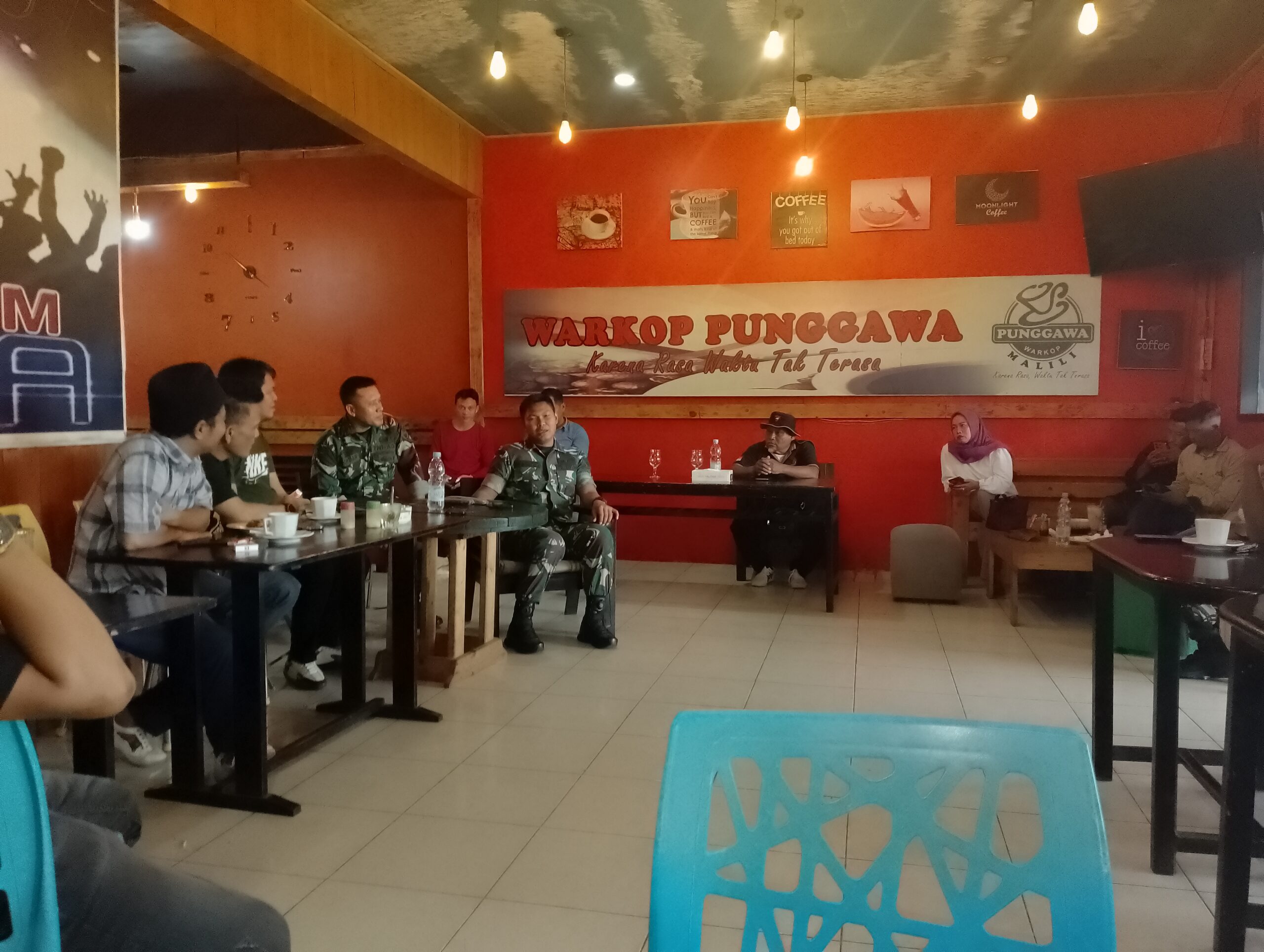 Dalam suasana santai dengan membicarakan agenda Pilkada yang damai, Letkol.Arm.Kabit Bintoro Priyambodo didampingi oleh Pabung Luwu Timur, Danramil 1403-15 Malili dan sejumlah anggota TNI serta insan pers di Bumi Batara Guru, diwarkop Punggawa Malili.Selasa (06/08/2024).