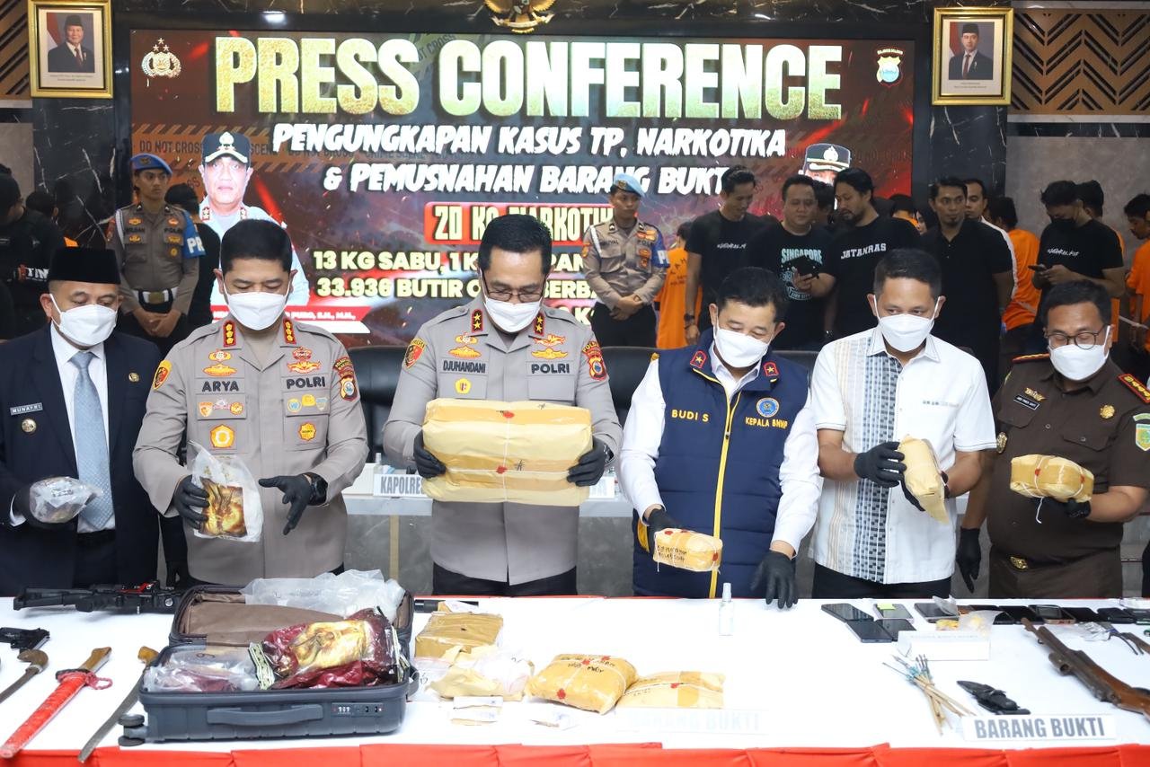 Dalam kesempatan tersebut, juga dilakukan pemusnahan barang bukti narkotika hasil pengungkapan tindak pidana narkotika oleh Polrestabes Makassar. Barang bukti yang dimusnahkan meliputi total 20 kilogram narkotika, terdiri dari: 13 kg sabu, 1 kg cairan sintetis, 6 kg atau 33.936 butir obat berbahaya (THD).