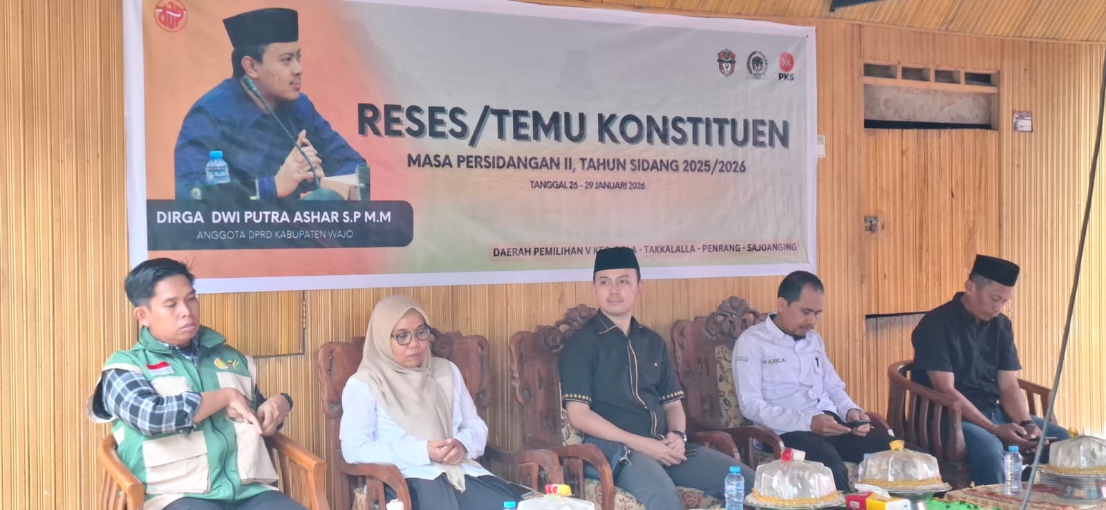 WAJO.SINYALTAJAM.COM — Anggota Komisi II DPRD Kabupaten Wajo, Dirga Dwi Putra Ashar, menyerap langsung keluhan dan harapan warga saat menggelar reses di Desa Alewadeng, Kecamatan Sajoanging, Rabu (28/1).