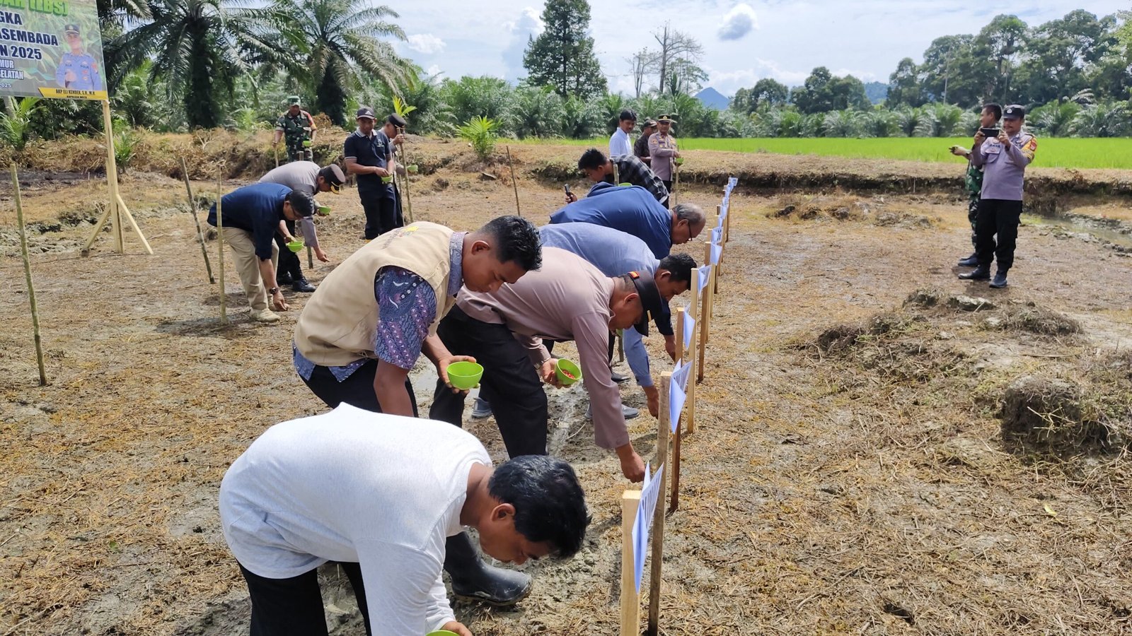 LUTIM. SINYALTAJAM. COM – Polres Luwu Timur bersama Pemerintah Kabupaten Luwu Timur menggelar kegiatan penanaman jagung di lahan baku sawah (LBS) di Dusun Sumali, Desa Rinjani, Kecamatan Wotu, Jumat (24/10/2025). Kegiatan ini merupakan bagian dari upaya mendukung program swasembada pangan nasional tahun 2025.