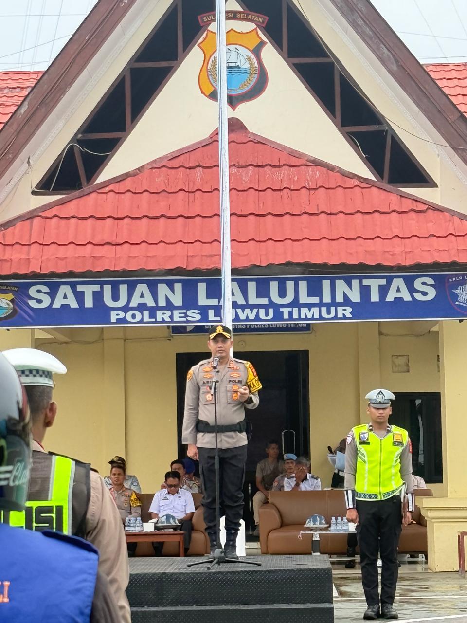 Kanit Turjawali Sat Lantas Polres Luwu Timur IPDA Suharyanto bertindak sebagai Komandan Apel. Apel ini juga diikuti oleh satu peleton gabungan Sat Lantas dan satu Peleton Dinas Perhubungan.