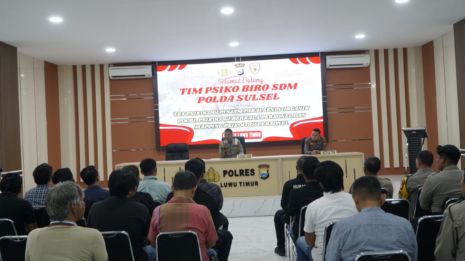 Pelaksanaan tes dipimpin oleh Kasubbagsi Psipol Bagpsi Biro SDM Polda Sulsel, AKP Dedy Afrijal S., S.Psi., M.Psi., Psikolog, yang didampingi Kabag SDM Polres Luwu Timur AKP M. Wemben, S.Sos. Kegiatan ini diikuti oleh personel Polres Luwu Timur sebagai peserta tes psikologi.