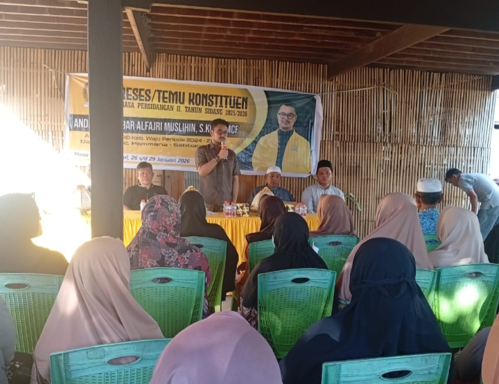 WAJO, SINYALTAJAM.COM — Ratusan warga memadati kegiatan reses Anggota DPRD Kabupaten Wajo, Andi Muhammad Akbar Alfajri Muslihin, S.Kom., MCF, yang digelar di Kelurahan Cina, Kecamatan Pammana, Selasa (27/1/2026). Antusiasme masyarakat terlihat tinggi untuk menyampaikan langsung berbagai aspirasi pembangunan di wilayah mereka.