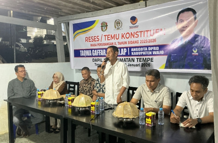 WAJO, SINYALTAJAM.COM – Suasana emosional mewarnai reses anggota DPRD Kabupaten Wajo dari Fraksi Nasdem, Taqwa Gaffar, yang digelar di Jalan Belibis, Kelurahan Sengkang. Ratusan warga dari 16 kelurahan di Kecamatan Tempe memadati lokasi yang disebut Taqwa sebagai “Rumah Perjuangan”—posko yang menjadi saksi bisu kemenangannya di Pileg 2024 lalu.