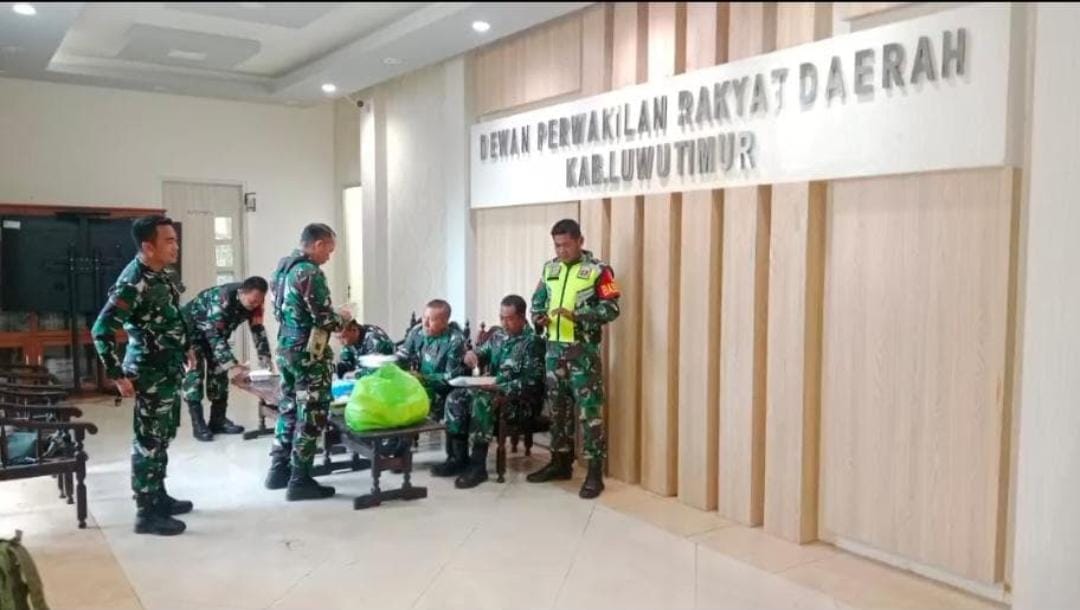 LUWU TIMUR. SINYALTAJAM .COM – Di tengah dinamika sosial yang berkembang di Luwu Raya, TNI hadir memberikan rasa aman bagi masyarakat Luwu Timur. Sejak Sabtu malam (30/8/2025), puluhan personel Koramil 1403-15 Malili berjaga ketat di kantor Bupati dan kantor DPRD Luwu Timur.